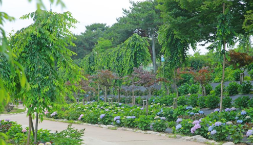 유구색동수국정원 꽃 축제에서는 다양한 색상과 형태의 수국을 감상할 수 있습니다. 하얀색, 분홍색, 파란색 등 각양각색의 수국이 한데 모여 장관을 이루고, 이 외에도 수국을 주제로 한 다양한 포토존이 마련되어 있어 가족, 연인, 친구들과 함께 추억을 남길 수 있습니다. 특별히 마련된 수국 터널은 방문객들에게 마치 동화 속에 있는 듯한 기분을 선사합니다.